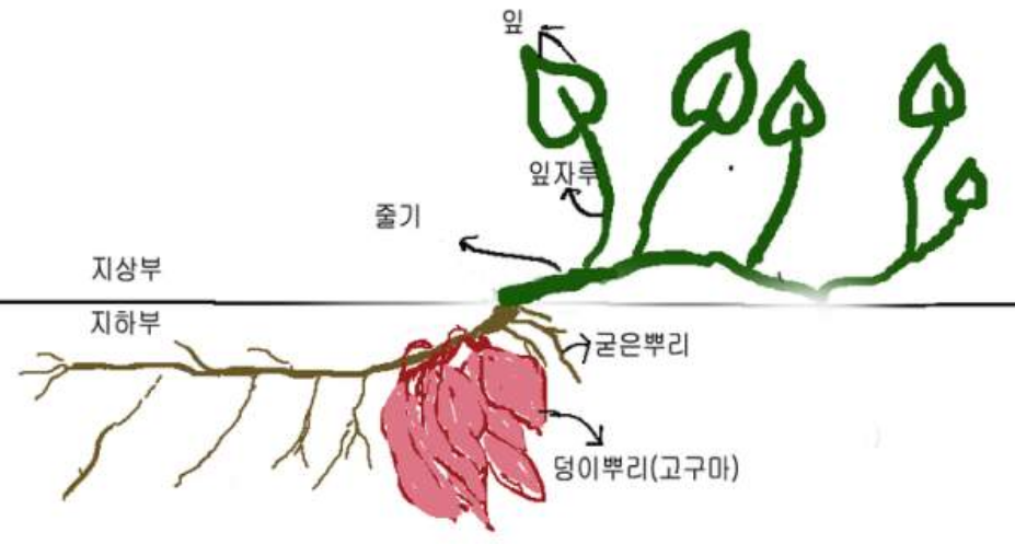 (물을 고구마 1포기에 100cc 이상 주어야 한다)