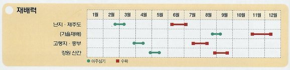 -겨울재배 : 12월중순 ~ 1월중순 - 종서의 휴면을 타파하여 파종