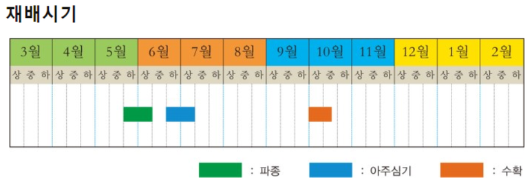 - 남부지방 파종시기: 6월 중순까지