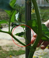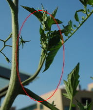 곁순이란? - 토마토잎과 원줄기 마디마디에서 나오는 줄기를 말한다.