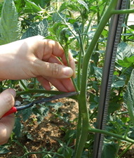 미처 발견하지 못하여 많이 자란 곁순은 가위로 자른다. |