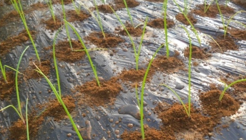 양파 전용 유공비닐을 이용하여 멀칭하면 편리하다.