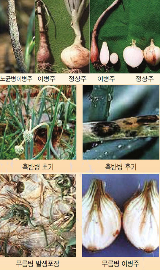 3~4월에 많이 발생하고 Sclerotium cepivorume 에 의해 양파, 파, 쪽파도 많이 발생하며 비늘줄기나. 뿌리에 회백색 균사가 밀생하여 조직이 물러지고 진전되면 비늘줄기 전체에 회백색의 소립균핵을 형성하여 더뎅이 증상처럼 나타난 후 비늘 줄기와 뿌리가 모두 썩는다. 병원균은 균핵 상태로 토양 속에서 여름을 휴면한 후 9~10월 마늘 파종고 함께 발아하여 기주에 침입, 추운 12~1월동안 잠시 멈추었다가 2월 초, 중순경 방생하기 시작, 육안으로 병징 판별이 가능하다. 토양병해이므로 대부분 군데군데 집단으로 발생하여 큰 피해를 주는데, 객토한 밭이다 발생초기는 산발적으로 나타날 수 있다.