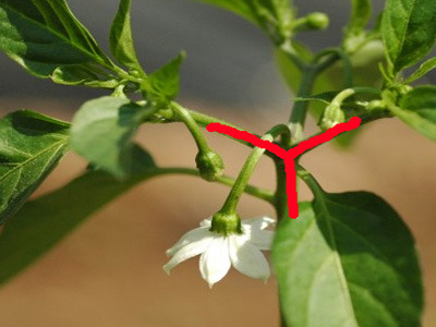 고추 줄기가 30-40cm정도 자라면(정식 후 10~20일경) 줄기가 디딜방아처럼 두세 줄기로 나누어지는데 이것을 일명 방아다리라 한다. 이 방아다리 자리에 꽃망울이 맺히고 다시 며칠이 지나면 꽃핀 자리에서 고추가 달린다.