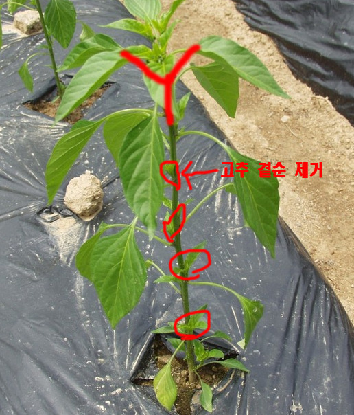 방아다리와 곁순제거는 고추의 생육상태를 보고 결정한다.