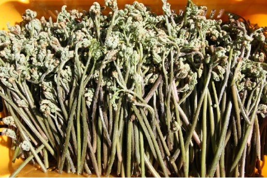 (나물의 줄기부분을 씹어보면 질긴 부분을 식별할 수 있다.)
