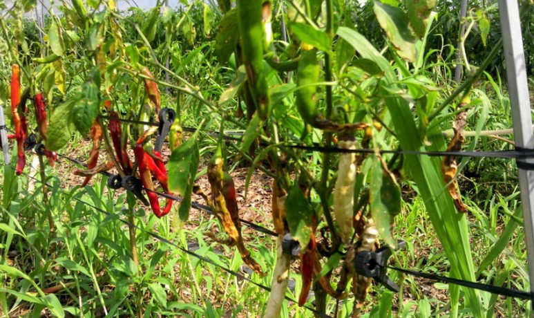고추 탄저병 예방과 가뭄을 줄이기 위한 고랑의 짚 멀칭