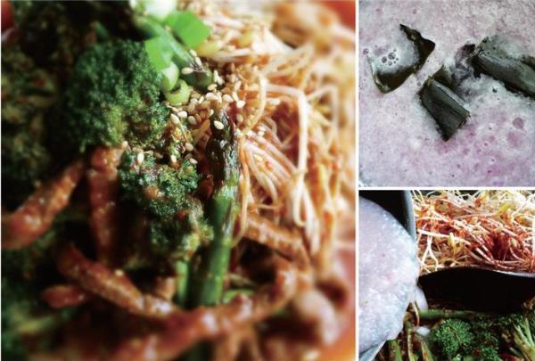 재료 : 브로콜리 줄기 5~6개, 아스파라거스 줄기 5~6개, 배추 1/3포기