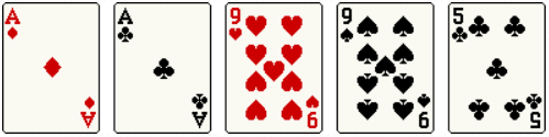 - 같은 숫자 두 개(원페어)가 두 쌍이 있는 패