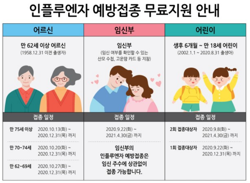 어린이 65세이상 무료 독감예방접종 시기,독감 무료접종 대상
