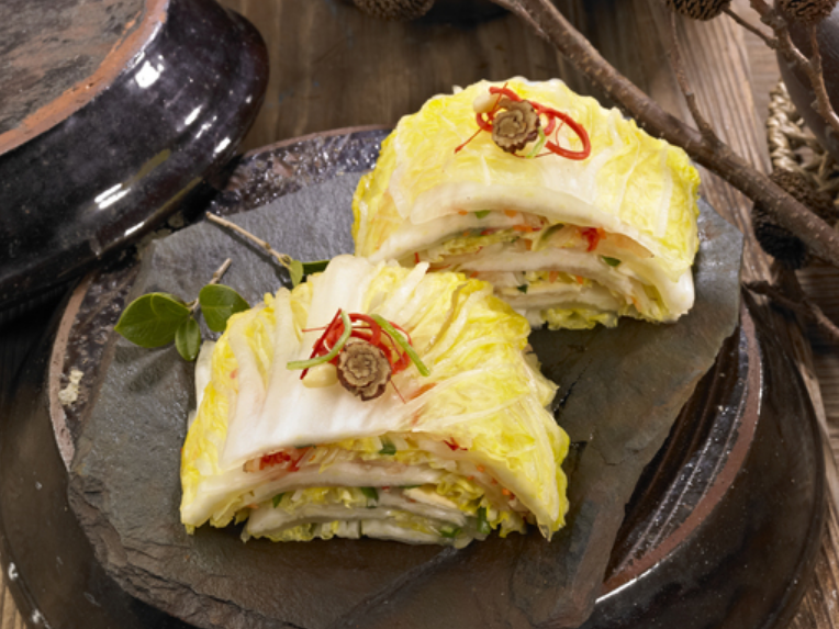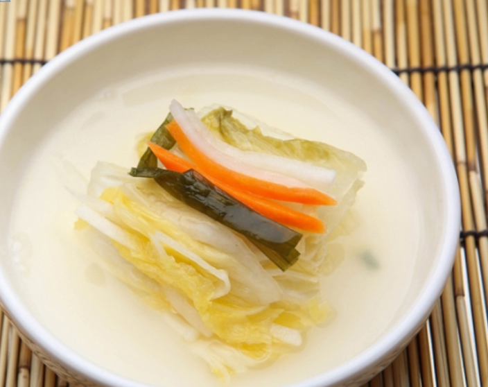 백김치란 배추에 고춧가루를 전혀 넣지 않고 만든 김치로 시원하고 담백한 맛이 일품이다. 추운 북쪽 지방에서도 즐겨먹는 음식으로 배추를 소금물에 절여 시원한 국물 맛을 내는 것이 맛의 핵심이다.