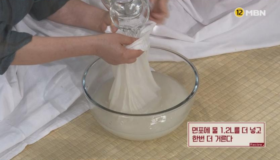 10. 면포에 물 1.2L를 더 넣고 한번 더 거른다.