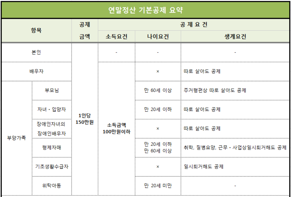 연말정산에서 제일 중요한 기본공제(인적공제)에 대해서 알아보겠습니다.