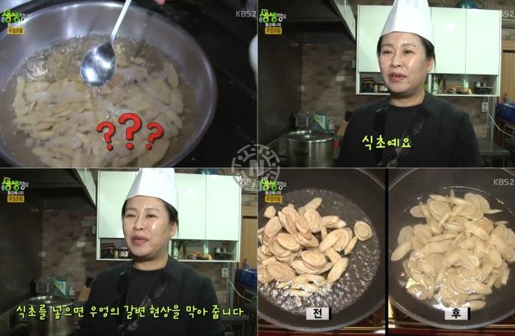 식초 1큰 술이면 우엉의 색이 변하지 않는다.