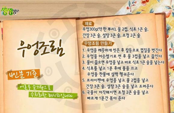 생생정보통 우엉조림 맛있게 하는법 황금레시피