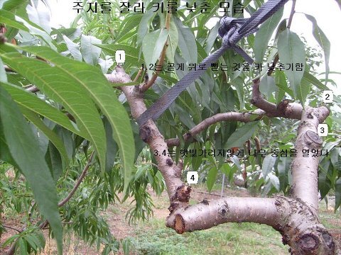 4, 처진가지 세우기 등 방법으로 전지한다.
