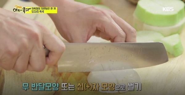1. 무는 두껍게 잘라준 뒤 반 또는 십자 모양으로 썰고 대파와 홍고추는 어슷하게 썬다.