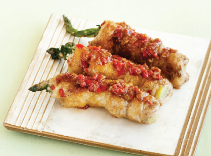 한 때 파티 메뉴로 유행했던 요리 중 하나가 바로 베이컨 말이다. 아스파라거스나 팽이버섯 등 다양한 재료와 조합해서 쉽게 만들 수 있기에 큰 인기를 끌었다. 소개하는 요리는 베이컨이 아닌 삼겹살을 이용해 더 든든하게 즐길 수 있다. 두릅을 고기말이로 즐길 경우 두릅의 비타민과 무기질을 풍부한 단백질을 함께 즐길 수 있어 좋은 보양이 된다.