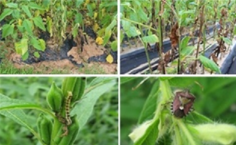 참깨 재배시기에 비가 자주 내리면 병 발생이 증가하고, 반대로 가물면 해충 발생이 많아질 수 있다. 특히 요즘처럼 폭염과 강우가 반복되는 시기에는 역병·시들음병·잎마름병·세균점무늬병·흰가루병 등의 병 발생과 왕담배나방·노린재류·진딧물류 등의 해충 발생이 많아질 수 있다.