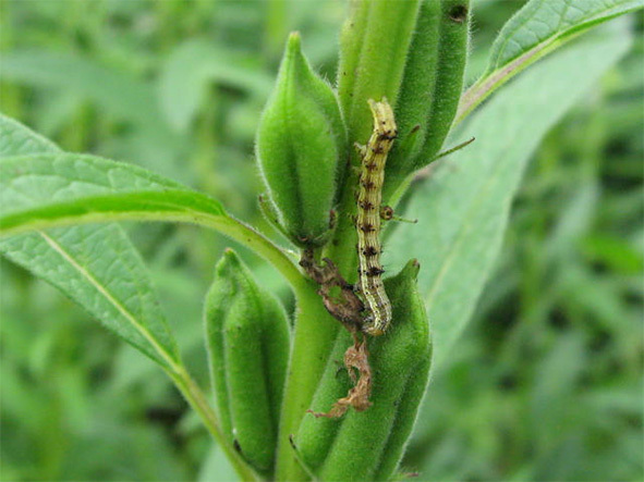 참깨에서 발생하는 주요 해충은 왕담배나방, 노린재류, 진딧물류가 있다.