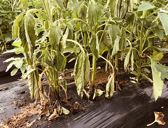 ※ 증상이 역병과 비슷할 때가 있는데 땅 쪽 줄기의 색이 변하면서 말랐다면 윗부분을 가로로 잘라 물관을 확인한다. 갈색이면 시들음병, 그렇지 않다면 역병이다.