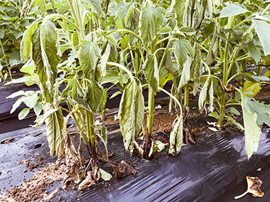 ※ 증상이 역병과 비슷할 때가 있는데 땅 쪽 줄기의 색이 변하면서 말랐다면 윗부분을 가로로 잘라 물관을 확인한다. 갈색이면 시들음병, 그렇지 않다면 역병이다.