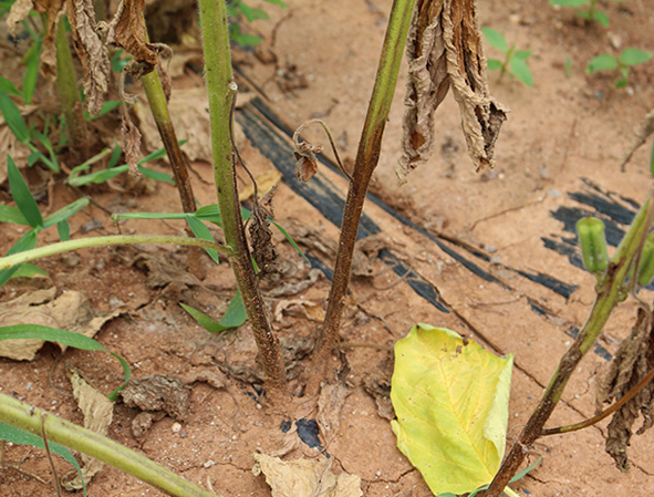 | 역병 | 유묘기~수확기 | 줄기가 갈색으로 변색되며, 잘록한 형태로 보이기도 함. 지상부가 누렇게 말라가는 증상을 보임 |
