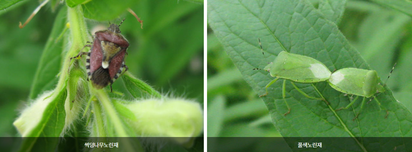 | 노린재류 | 개화기~수확기 | 꼬투리가 달리는 시기부터 종실을 가해해 수량과 품질에 영향을 미침 | 참깨에 등록된 타 살충제가 노린재 약제로 등록되어 있음 참깨에 등록된 타 살충제로 방제 효과 기대 |