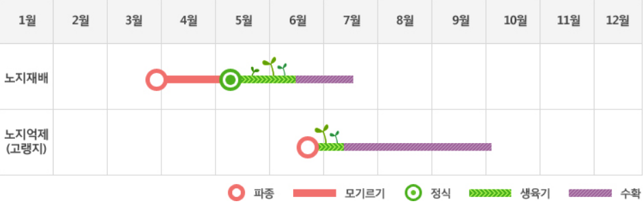 파종시기 3월 하순~4월 초순 춘분 이후 2, 3월 서리가 지난 뒤