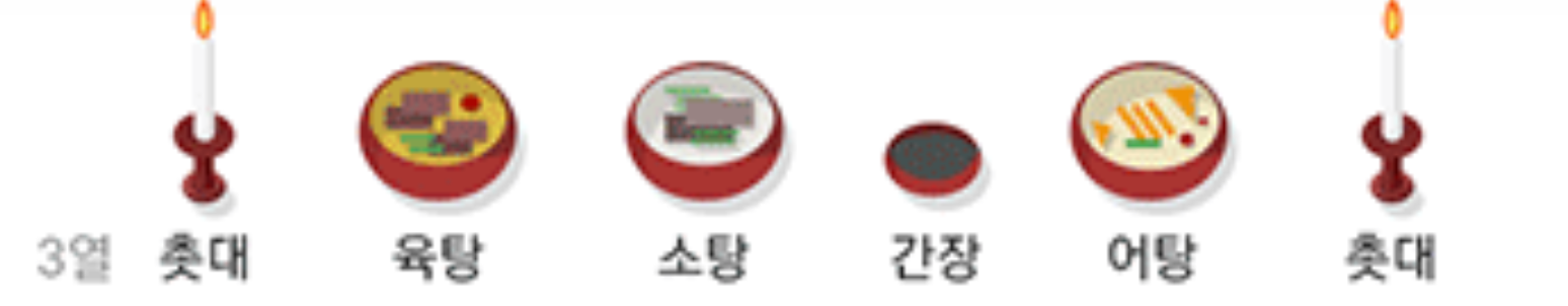 4. 짝수가 아닌 홀수로! : 짝수는 양을 의미하고 홀수는 음을 의미하기 때문에 음식을 올릴때는 홀수의 개수로 올려야 한다.