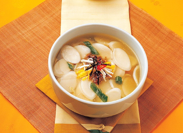 이렇게 새해 첫날 먹는 음식을 하얀 떡국으로 삼은 이유는 가래떡이 희고 길어 장수를 의미하며, 비스듬하게 썰어 낸 가래떡은 동그란 엽전 모양과 닮아 새해에 재물이 많이 쌓이기를 기원한다는 의미도 지녔다고 한다.