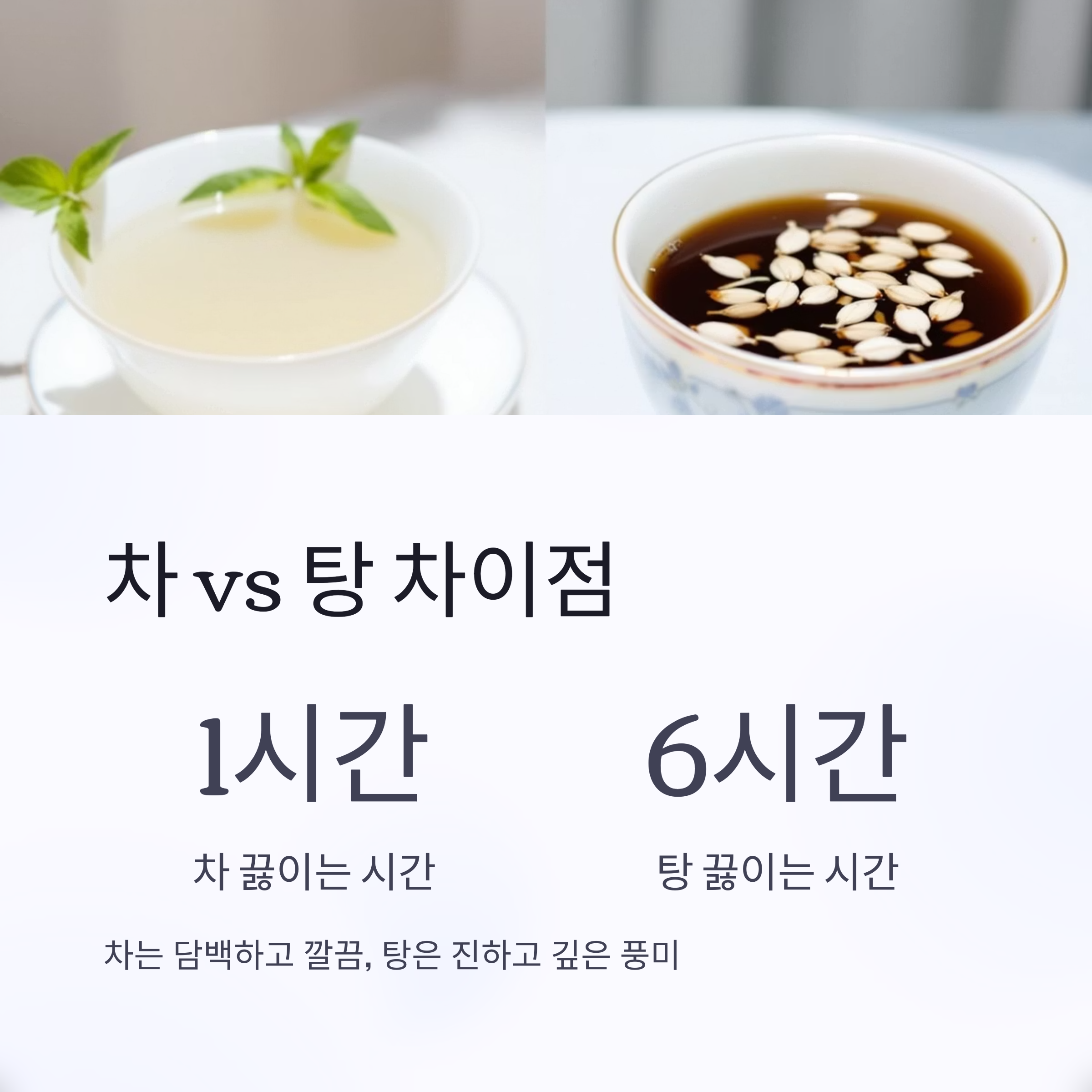 차는 10g당 물 1리터, 탕은 20g당 물 2리터를 기준으로 하세요. 기호에 따라 농도를 조절할 수 있습니다.