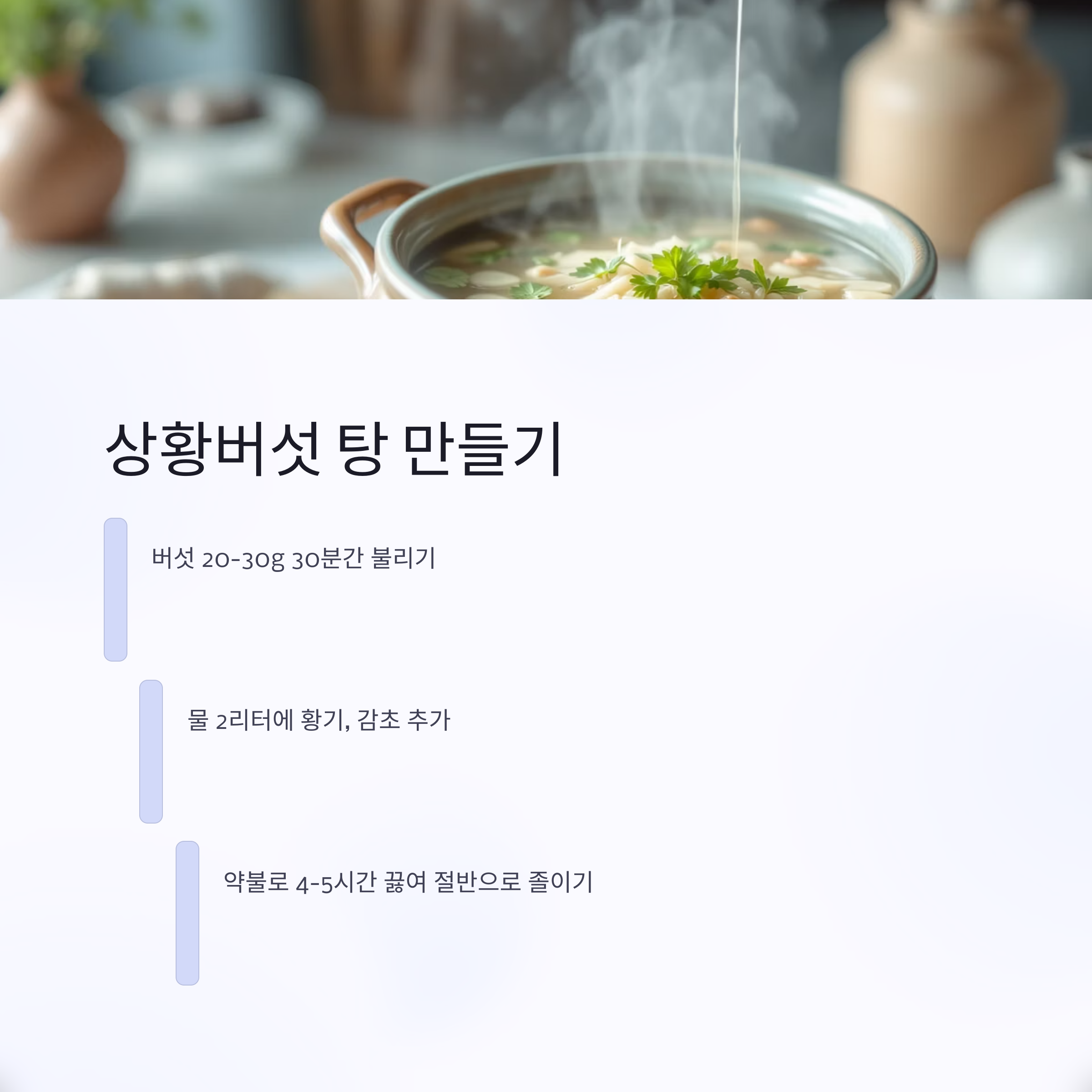 하지만 처음 접하는 분들은 어떻게 조리해야 할지 막막할 수 있어요. 그래서 오늘은 상황버섯 끓이는 방법을 초보자도 쉽게 따라 할 수 있도록 꼼꼼히 정리해 봤습니다. 이 글을 통해 여러분도 상황버섯의 매력에 빠져보세요!