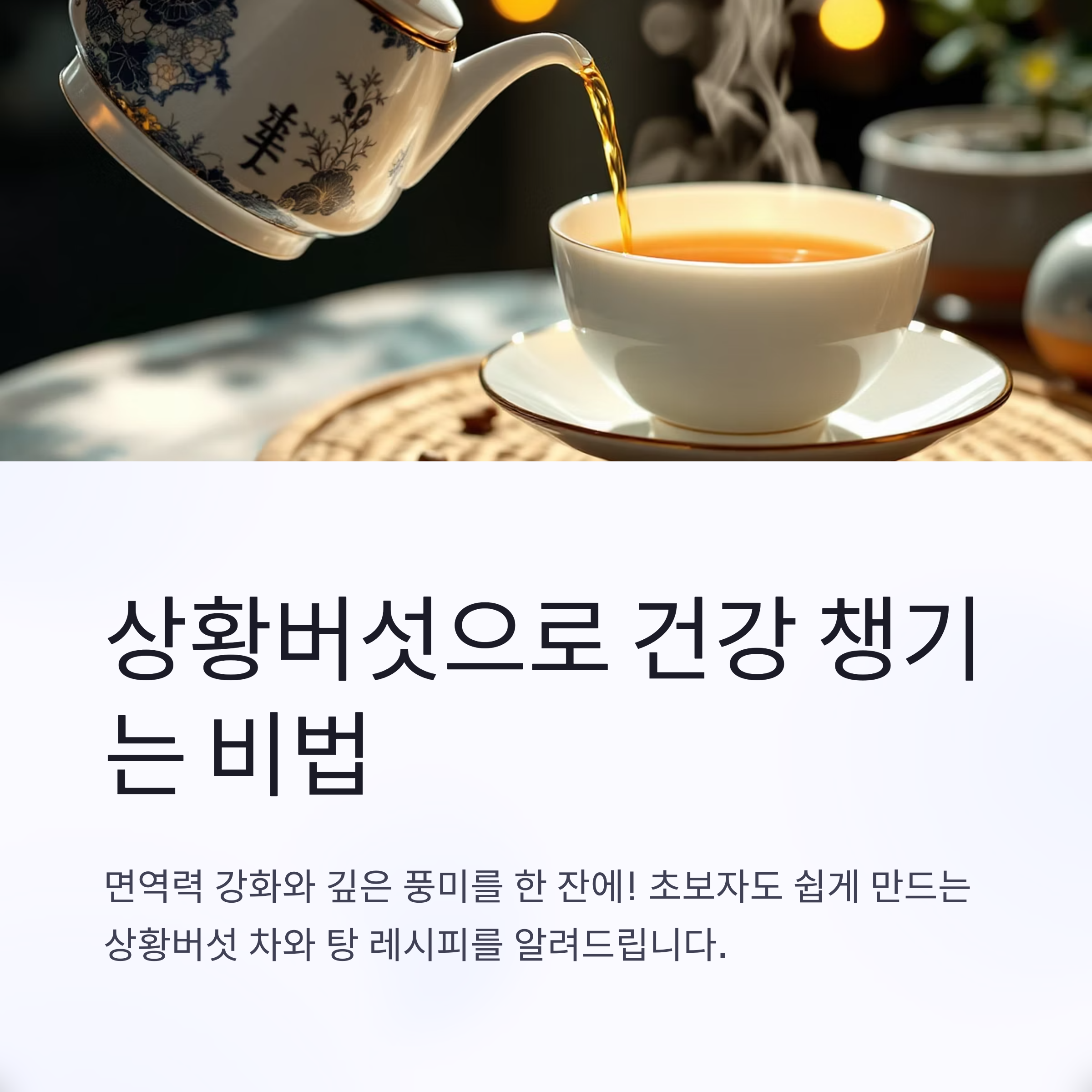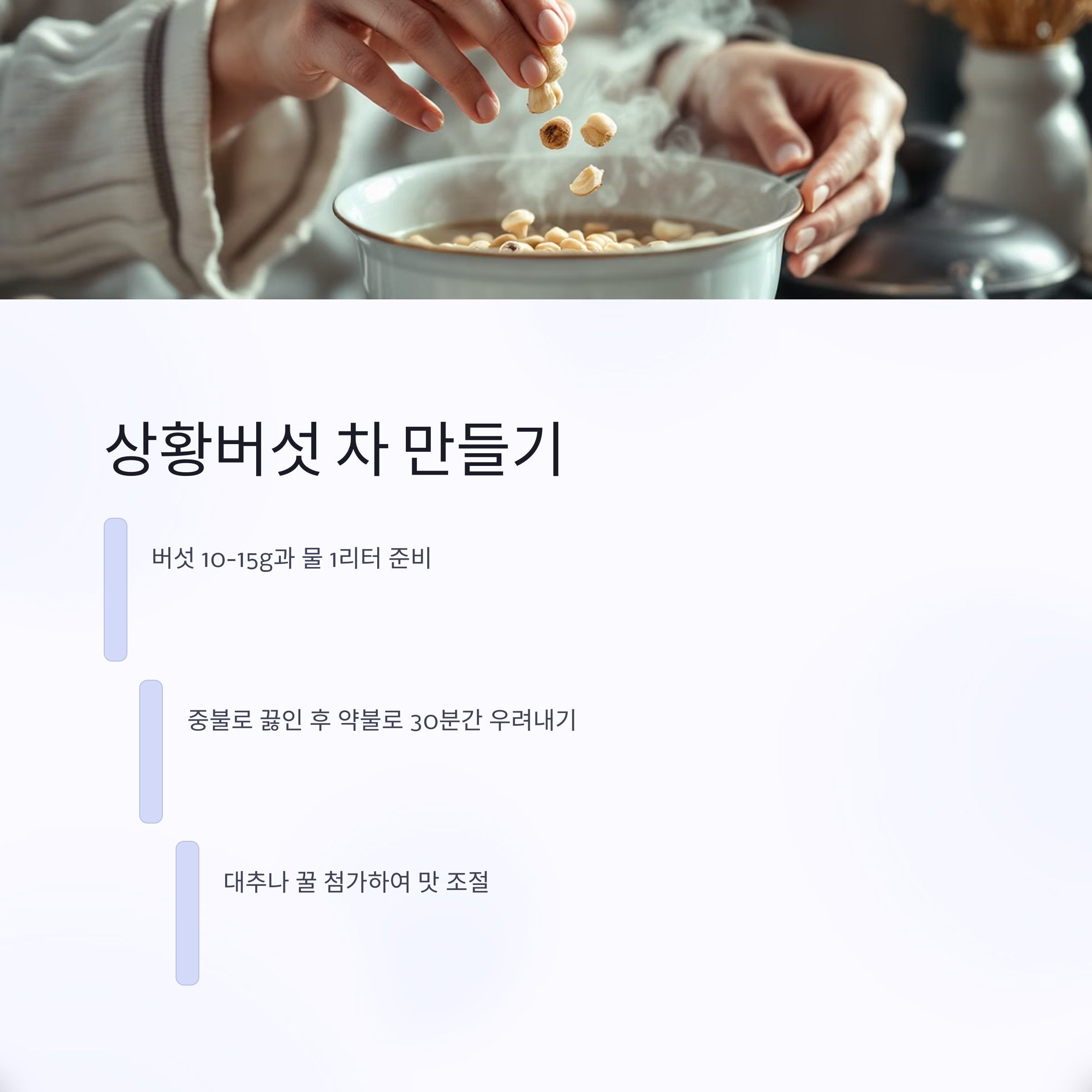 상황버섯 차는 바쁜 일상 속에서 간단히 즐기기 좋은 방법이에요. 준비 과정도 간단하고, 부담 없이 마실 수 있어 초보자에게 추천합니다. 📌 아래는 제가 직접 여러 번 시도하며 완성한 레시피입니다.
