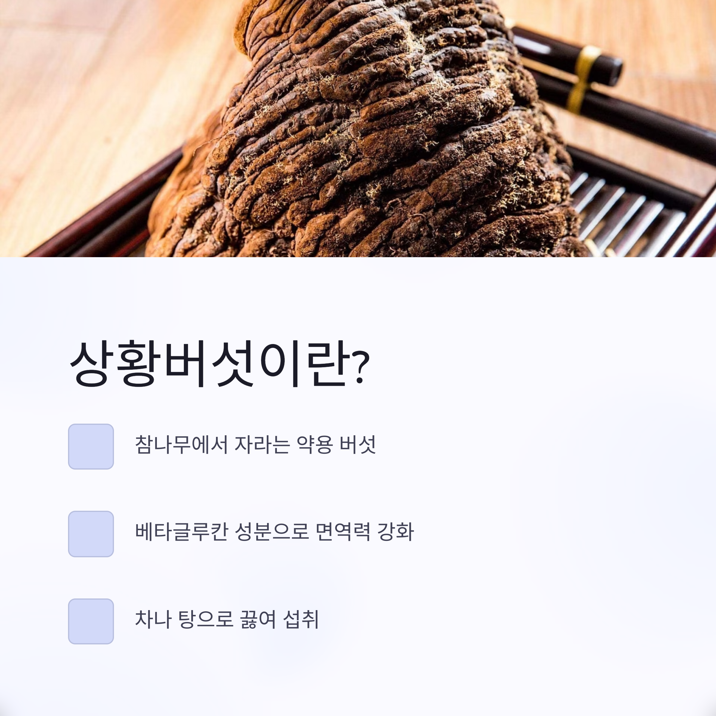 - 주의사항: 상황버섯은 약성이 강할 수 있으니, 임산부나 특정 질환이 있는 분은 의사와 상담 후 섭취하세요.