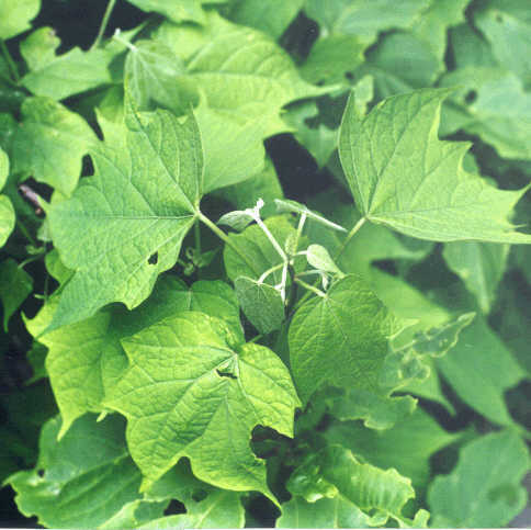 특 징 : 잎은 크고 오각형으로 잎끝이 뽀쪽하며 고유의 냄새가 난다 잎의 모양이 박쥐같다하여 붙여진 이름임