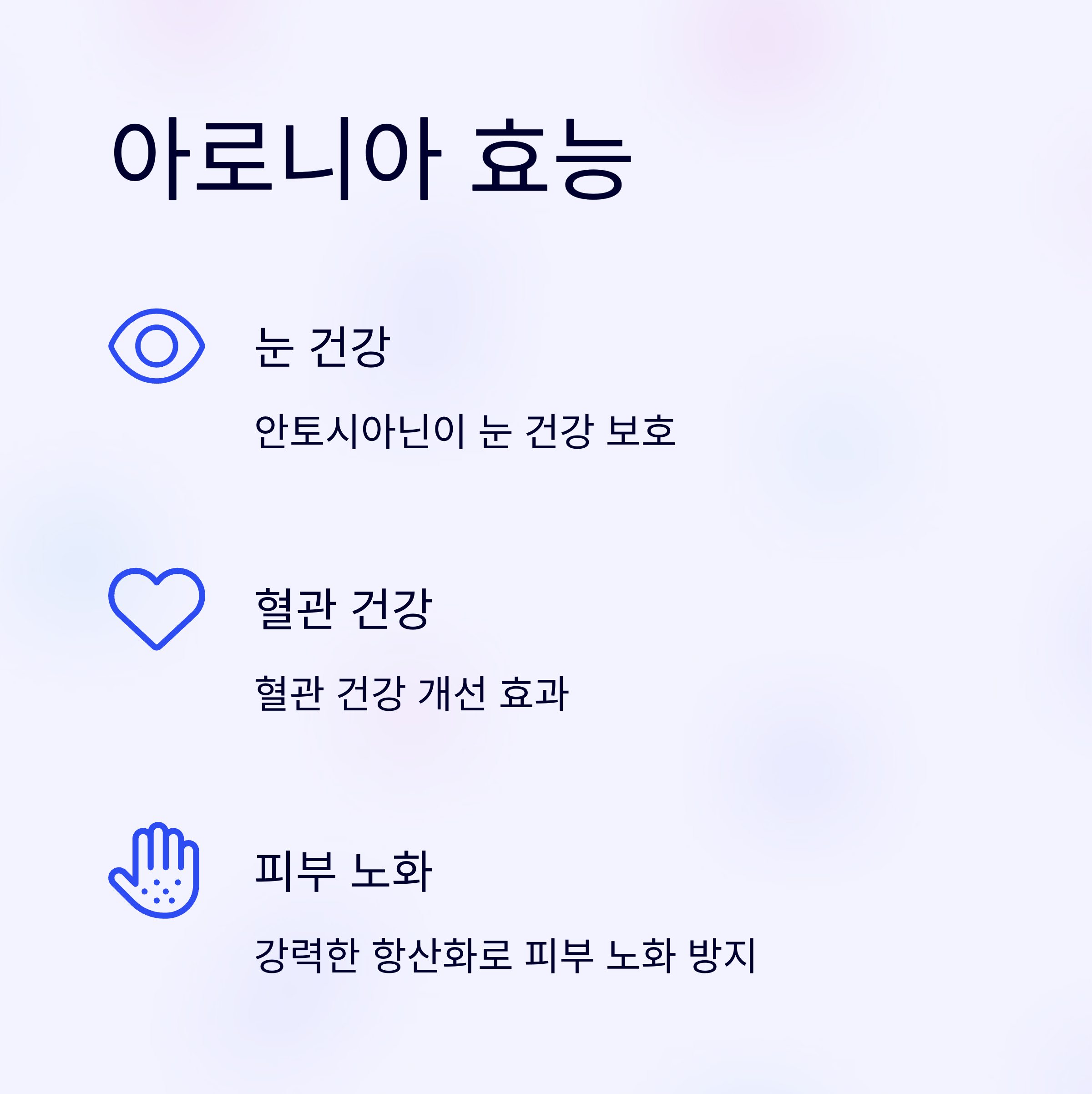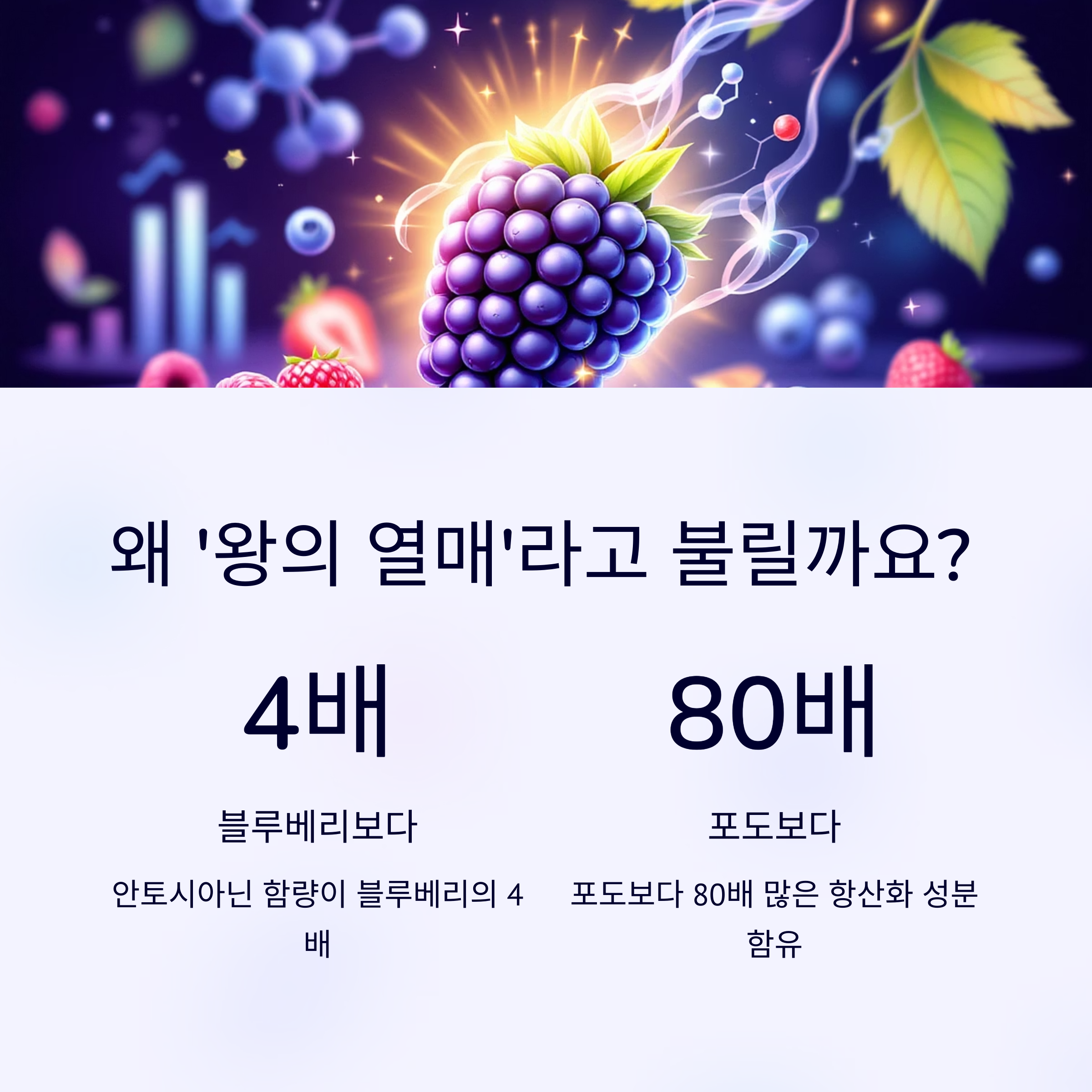 아로니아가 슈퍼푸드의 제왕으로 불리는 이유는 바로 압도적인 '안토시아닌' 함량 때문입니다. 안토시아닌은 우리 몸의 활성산소를 제거해 세포의 노화를 막고, 염증을 줄여주는 강력한 항산화 성분이에요.