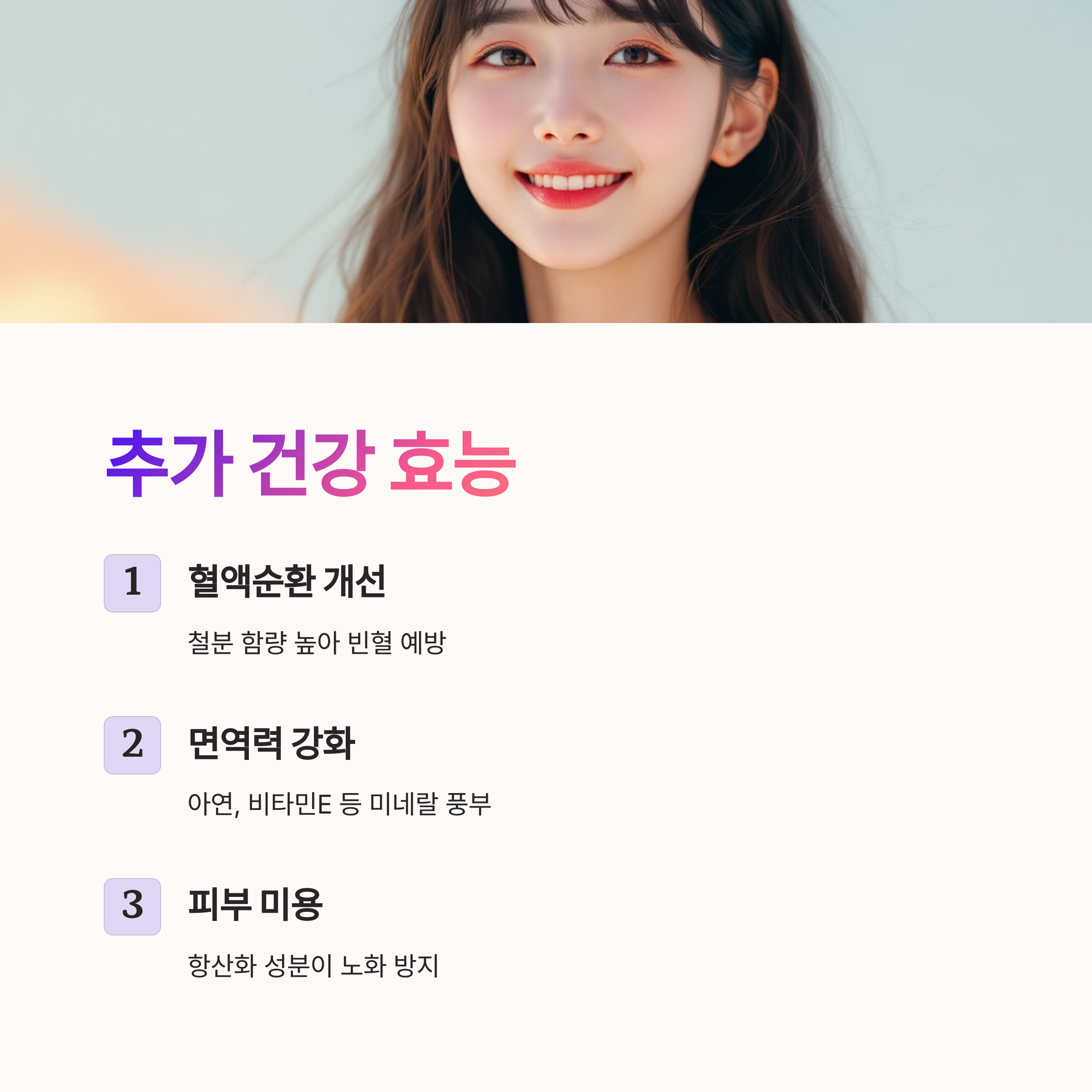 따뜻한 성질을 가지고 있어 몸이 찬 사람의 기혈 순환을 돕고, 전반적인 신체 기능을 끌어올리는 데 도움을 준다고 합니다. 단순한 식품을 넘어 건강을 위한 투자로 여기는 분들이 많은 이유입니다.