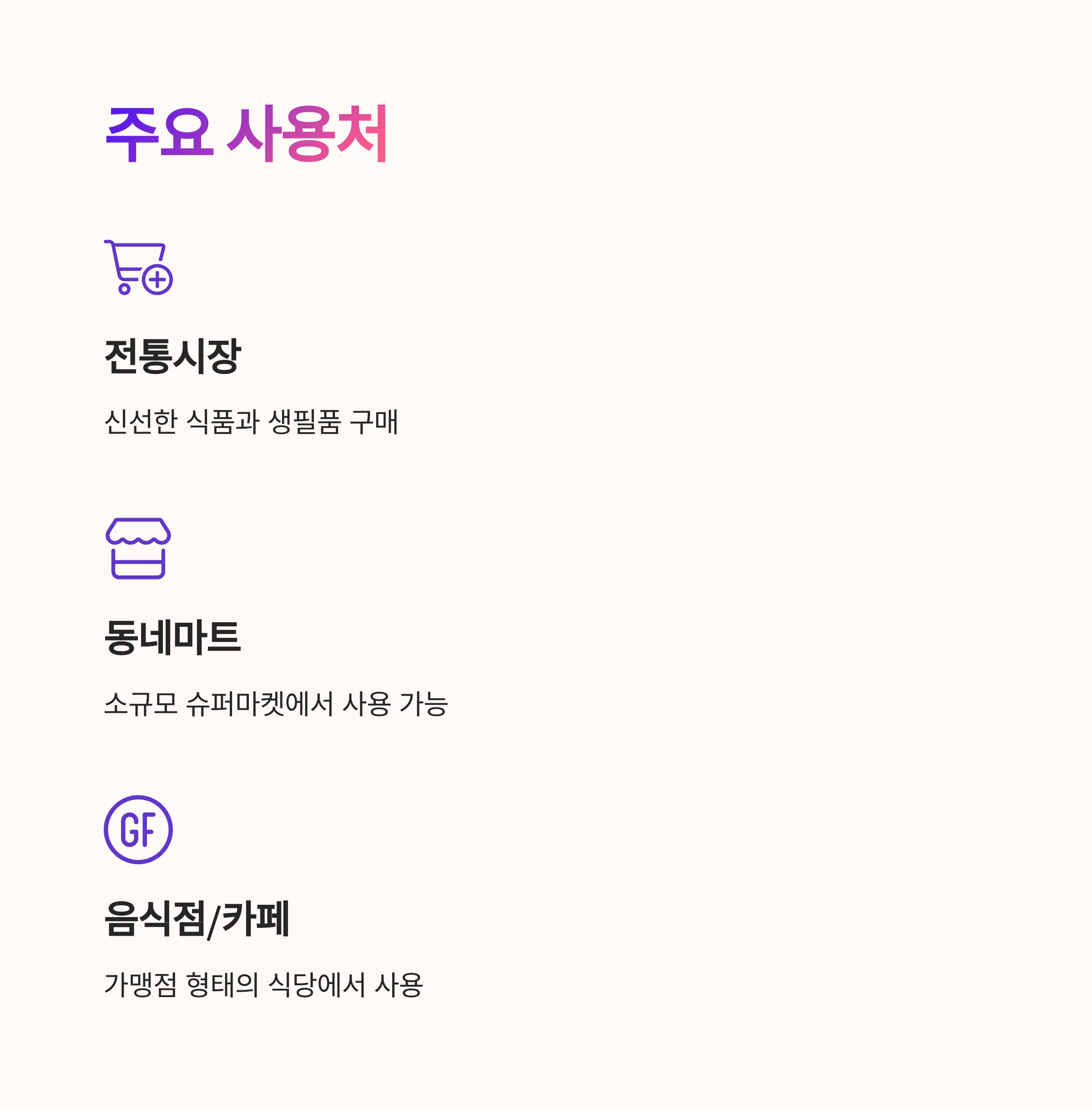 대형마트에서 사용하고 싶었던 분들은 아쉬울 수 있지만, 동네 가게에서 쿠폰을 쓰면 지역 상인과 따뜻한 정을 나눌 수 있어요. 💡