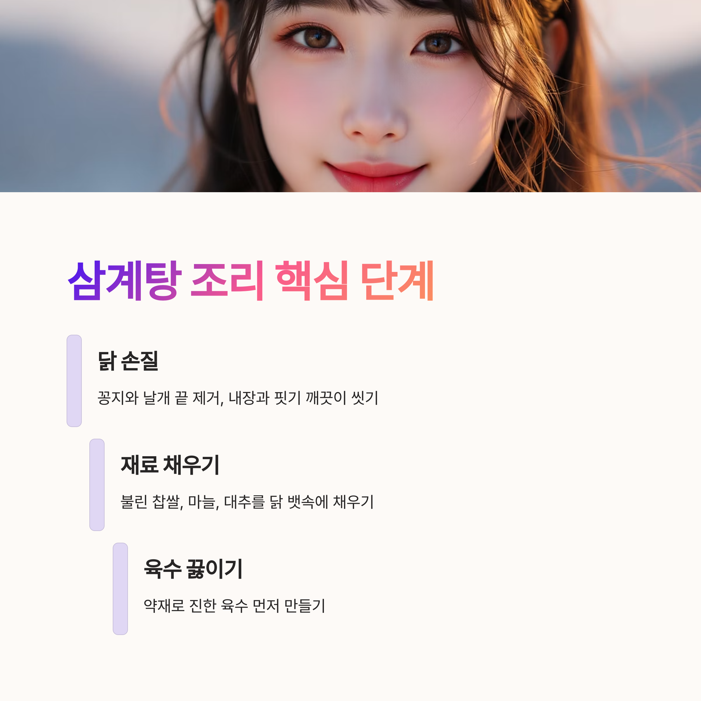 자, 이제 본격적으로 삼계탕 황금레시피를 따라 조리해 볼까요? 처음 해보는 분들도 쉽게 따라 할 수 있도록 상세히 설명할게요.