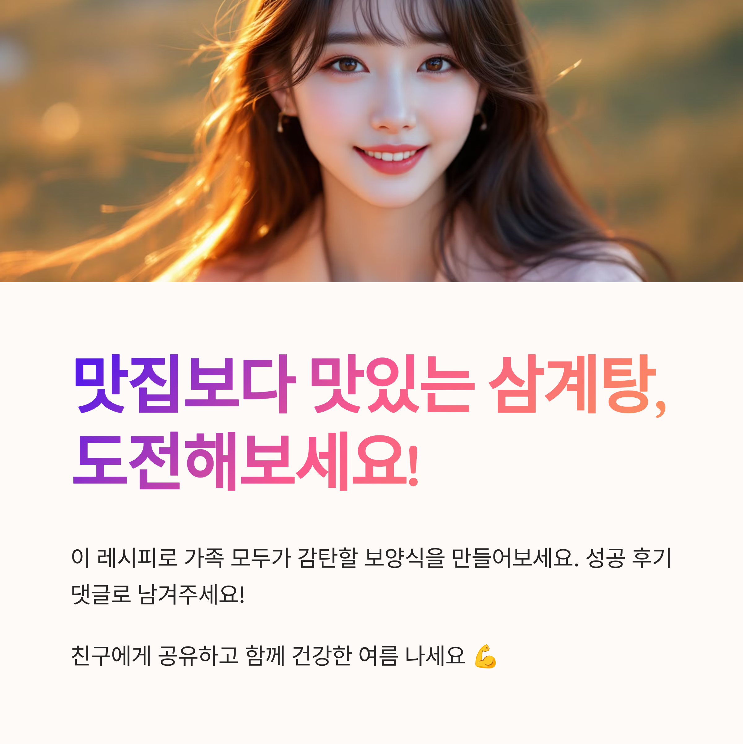 뜨끈한 국물 한 그릇으로 기운을 북돋우는 기분, 정말 최고랍니다! 😊 여러분도 이 레시피로 맛있는 삼계탕 만들어 보시고, 성공 후기 꼭 들려주세요!