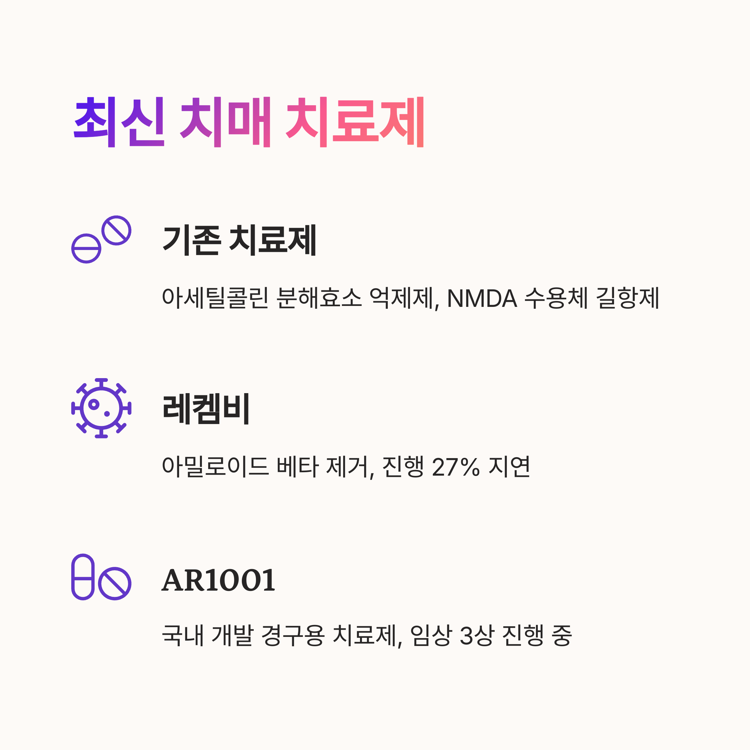 현재 치매 치료제는 완치보다는 증상 완화와 진행 지연을 목표로 합니다. 레켐비 같은 신약은 초기 단계에서 효과적이지만, 전문의 상담이 필수입니다.