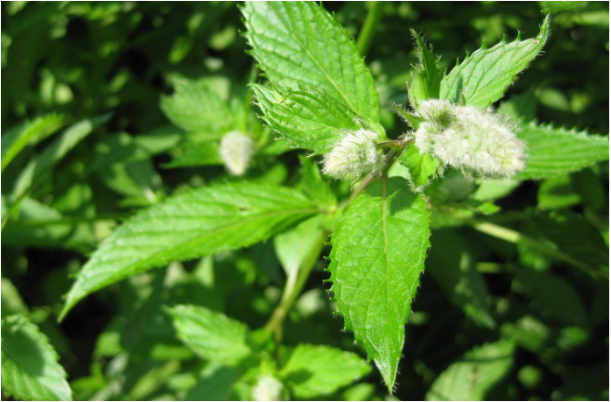 살균·방충 효과, 목 아픔, 기관지염, 두통을 개선해 주며, 식욕증진에 효과적이다. 생잎은 언제나 이용가능하며, 건조용은 개화 직전에 밑둥에서 약간 올려 자르고 잎을 훑어서 딴 다음 줄기째 그늘에서 말려 용기에 보관한다.