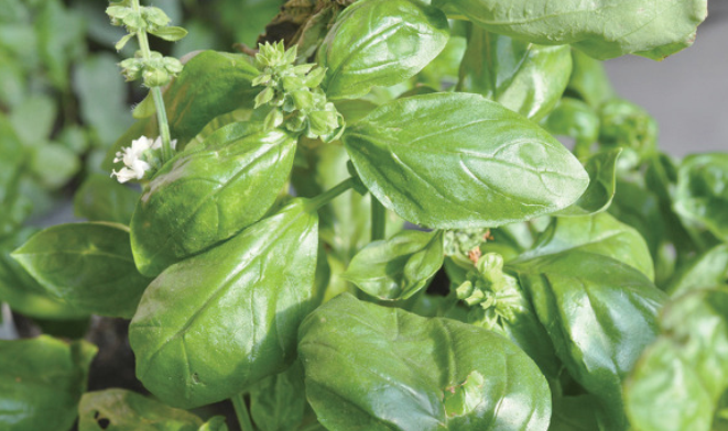 바질은 졸음 방지, 위 활동 촉진, 벌레 물린 데 살균작용을 하며, 비타민·칼슘·철분 성분이 풍부하다. 프레시 바질은 토마토, 마늘과 잘 어울려 이탈리아요리에서 없어서는 안 되는 식재료다.