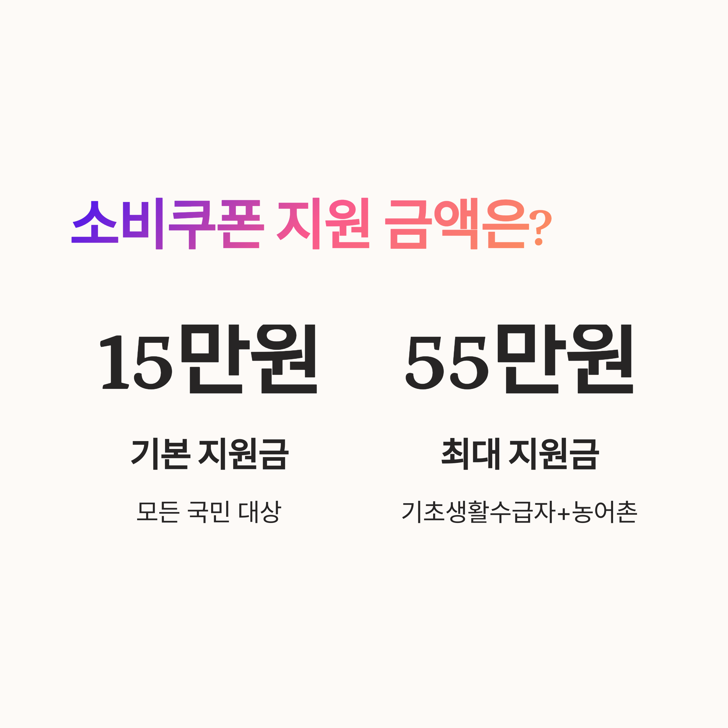 | 일반 국민 | 15만 원 | 비수도권: +3만 원, 농어촌 인구감소지역: +5만 원 | 20만 원 |