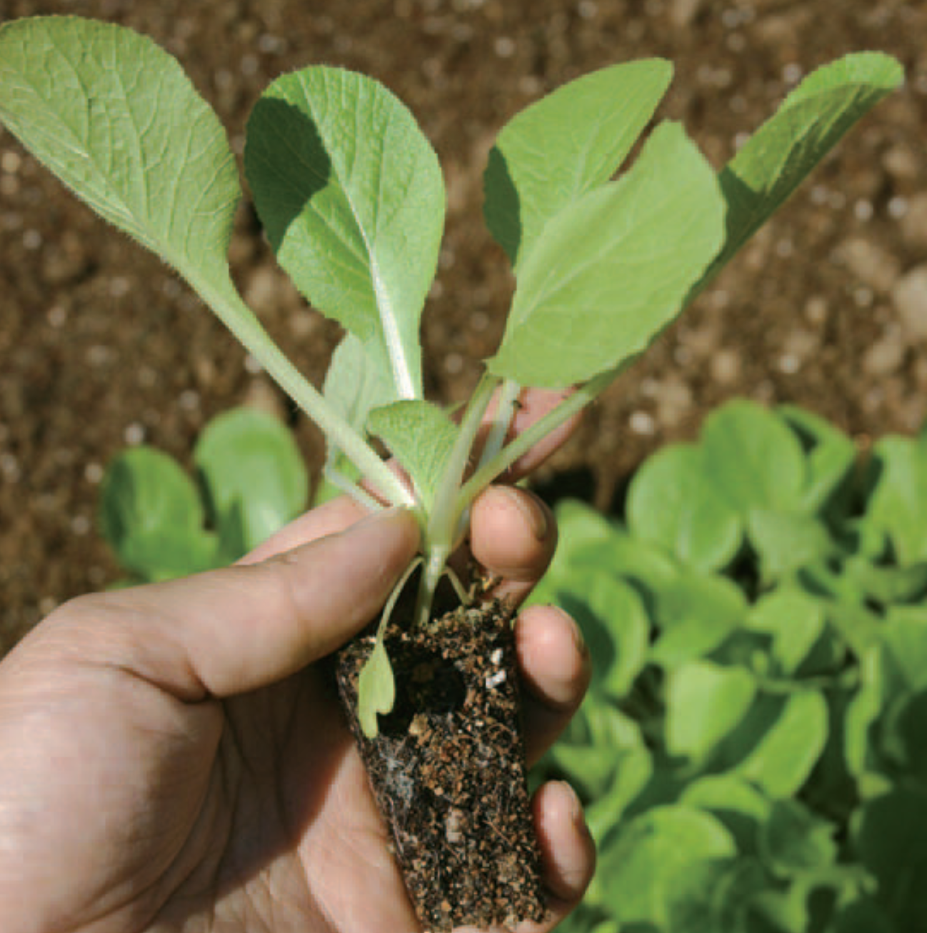 ③ 모종 심기: 모종을 포트에서 조심스럽게 꺼내 구멍에 넣습니다. 이때 모종의 흙과 밭의 흙 높이가 같도록 심는 것이 포인트! 너무 깊게 심으면 생장점이 흙에 묻혀 자라지 못할 수 있습니다.