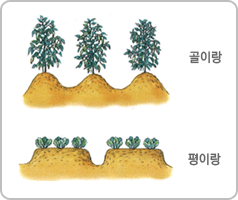 이랑을 만들 때 보통 양쪽에서 손이 닿기 좋게 두둑의 폭은 1~1.2m 정도로 한다.○ 고추나 고구마와 같이 물 빠짐이 특히 좋아야하는 작물들은 두둑을 40~50cm 폭으로 한 골이랑을 만든다.○ 이랑을 만들때는 괭이나 쇠갈퀴로 흙을 쳐서 올리고 마지막으로 쇠갈퀴로 다시 평탄하게 골라준다.