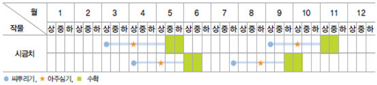 봄 파종 재배의 경우 3~5월에 씨를 뿌려 4~6월에 수확하는데,