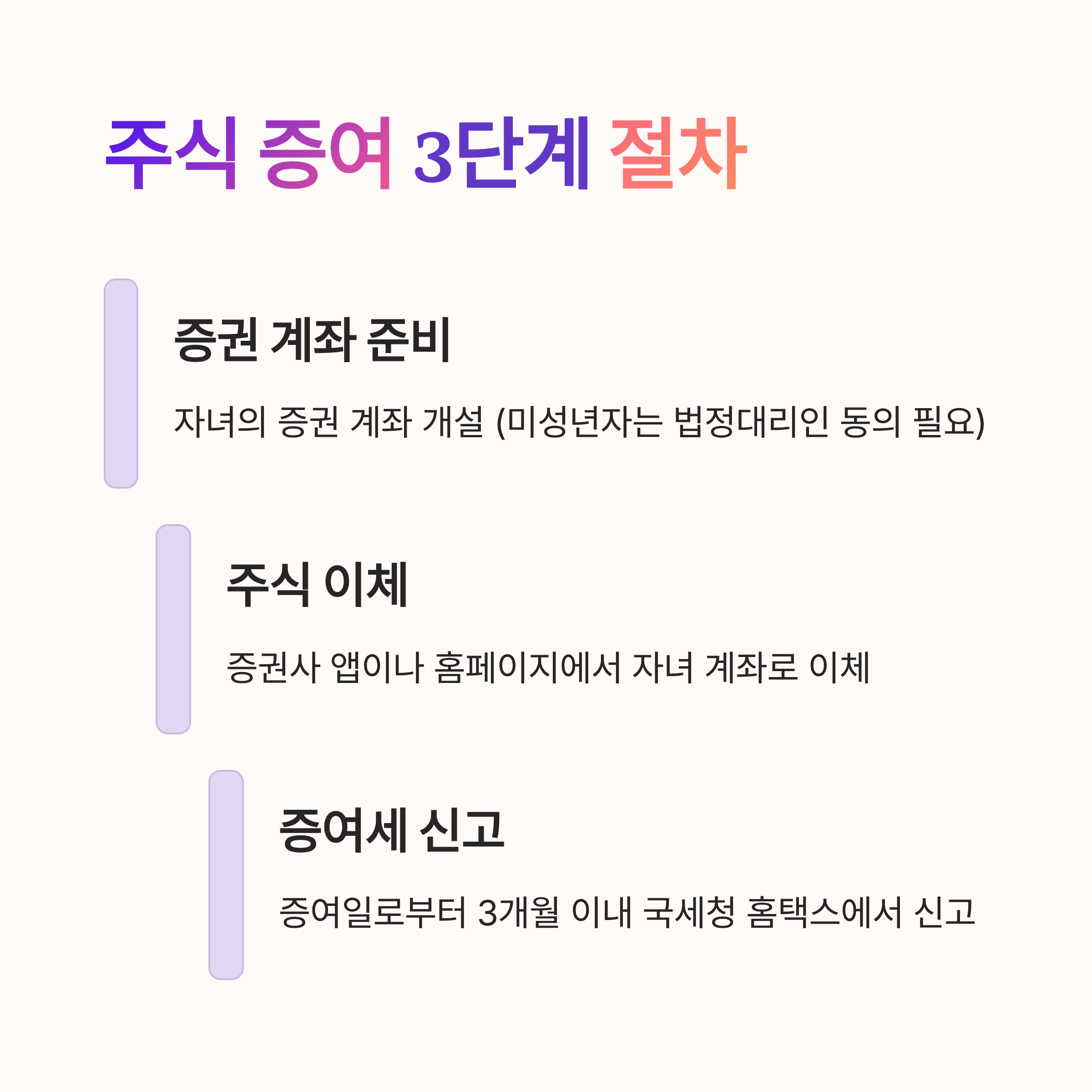 주식 증여세 신고방법과 자녀 증여세 신고방법은 생각보다 간단하지만, 신고 기한과 서류를 철저히 준비해야 세무 문제 없이 자산을 이전할 수 있습니다.