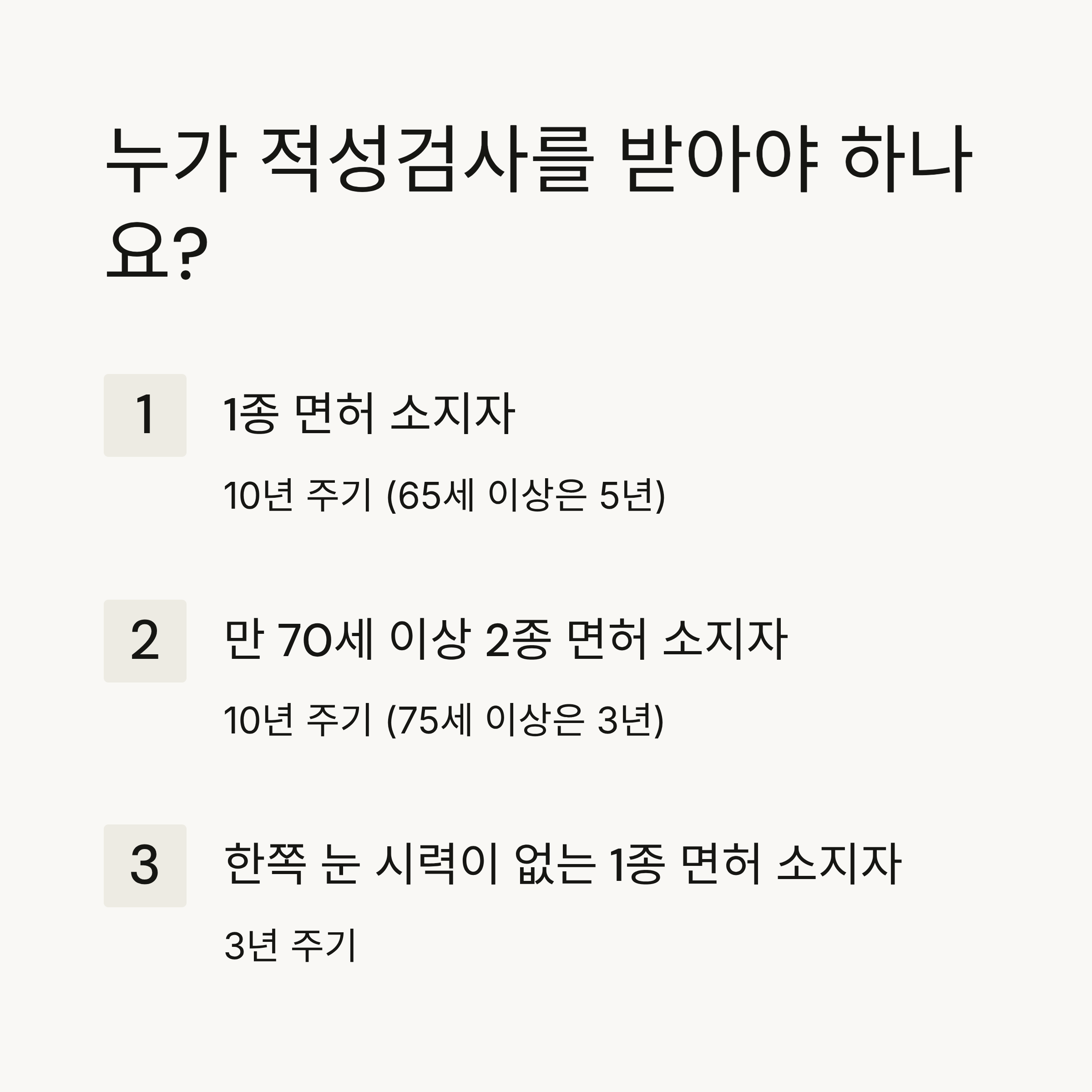 -2종 보통 면허 소지자 중 만 70세 이상 (10년 주기, 75세 이상은 3년)